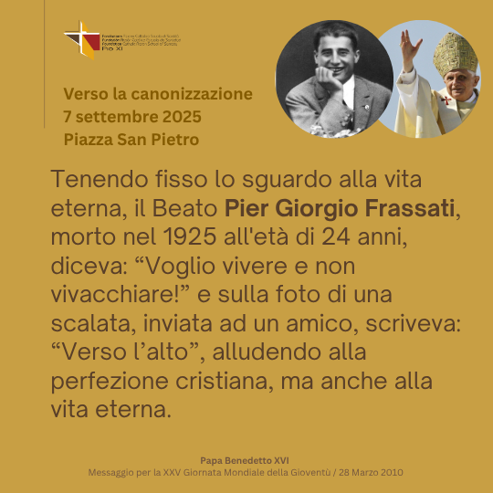 Prepariamoci con cuore aperto e con gioia grande: la canonizzazione di Pier Giorgio Frassati è un dono per tutta la Chiesa.